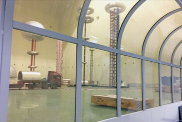 高壓局放試驗(yàn)大廳控制室可采用我單位設(shè)計(jì)的曲面觀察窗,樣式美觀,觀察范圍無(wú)任何死角